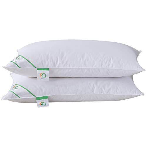 2 pack Goose Feather Down Pillows, 100% Cotton Shell, Non-allergenic & Anti dus