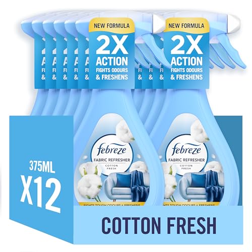 Febreze Fabric Freshener Spray Cotton Fresh 12 x 385ML, Fights Tough Odours Trapped In Fabrics And Leaves A Fresh Scent