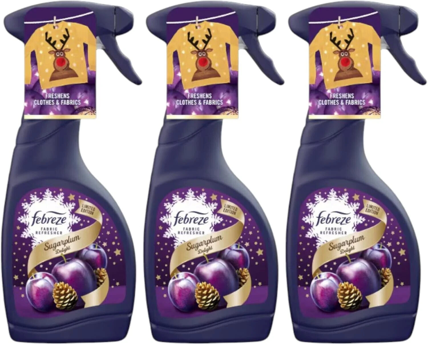 3X FEBREZE FABRIC REFRESHENER SPRAY SUGARPLUM DELIGHT 500ML ODOUR ELIMINATOR
