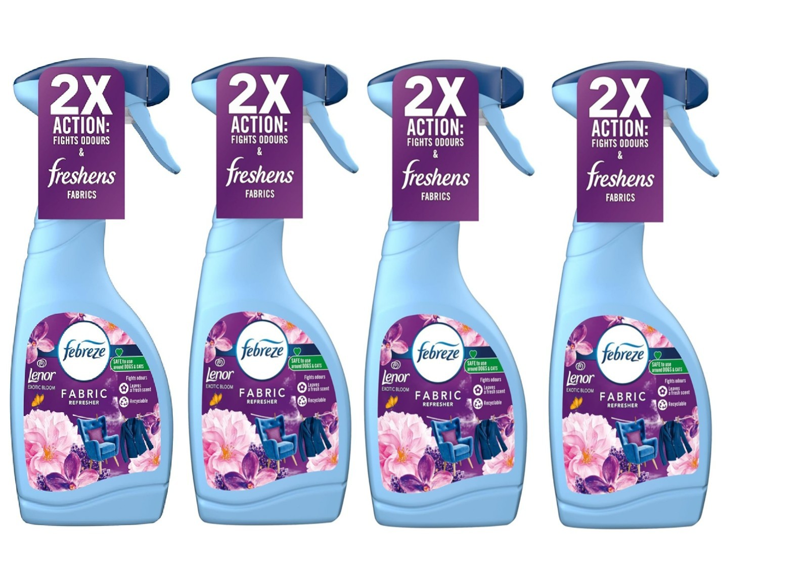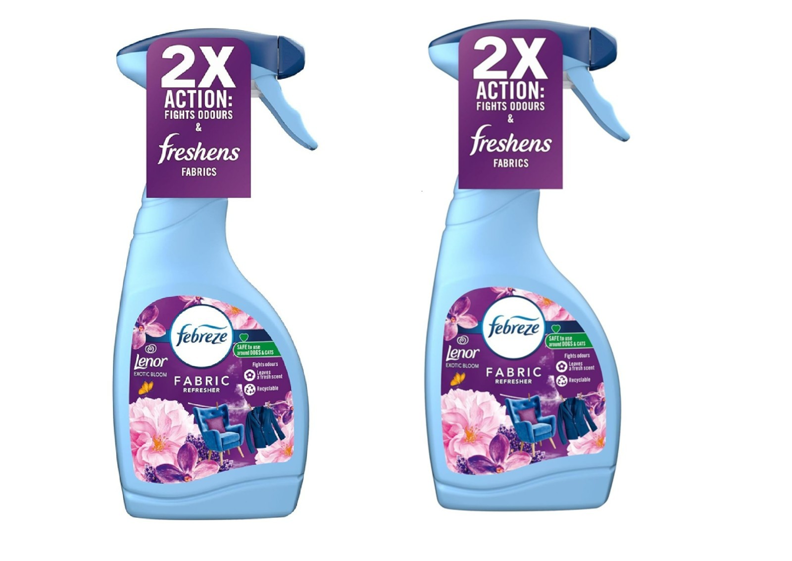 2X Febreze Fabric Freshener Spray Exotic Bloom 500ml Cleans Away Odours