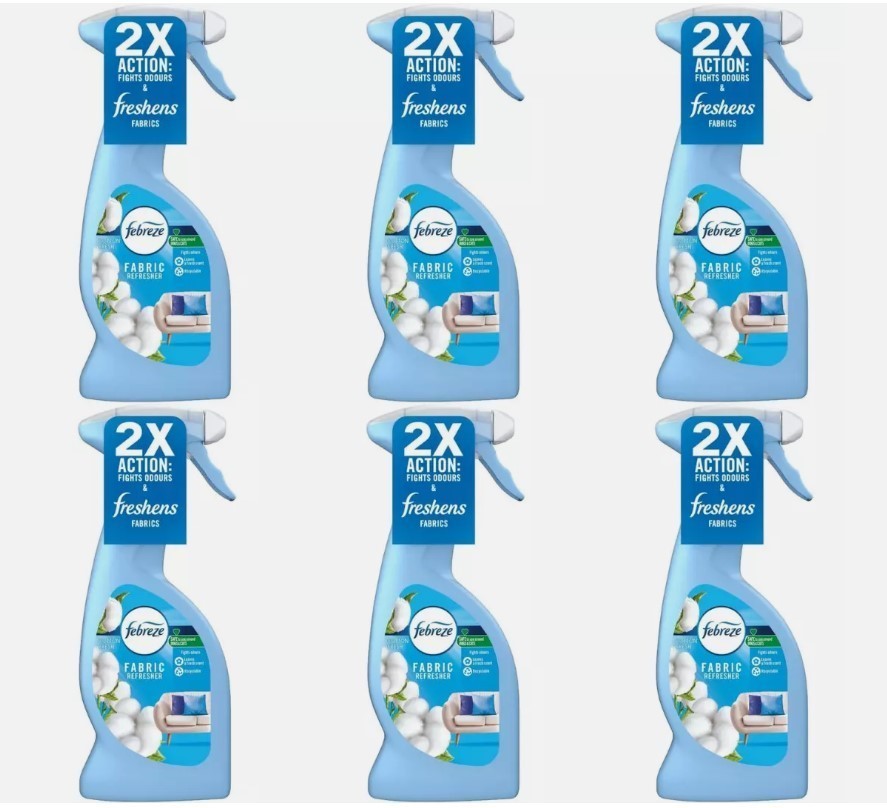 x6 Febreze Fabric Freshener Fresh Spray Cotton 375 ml