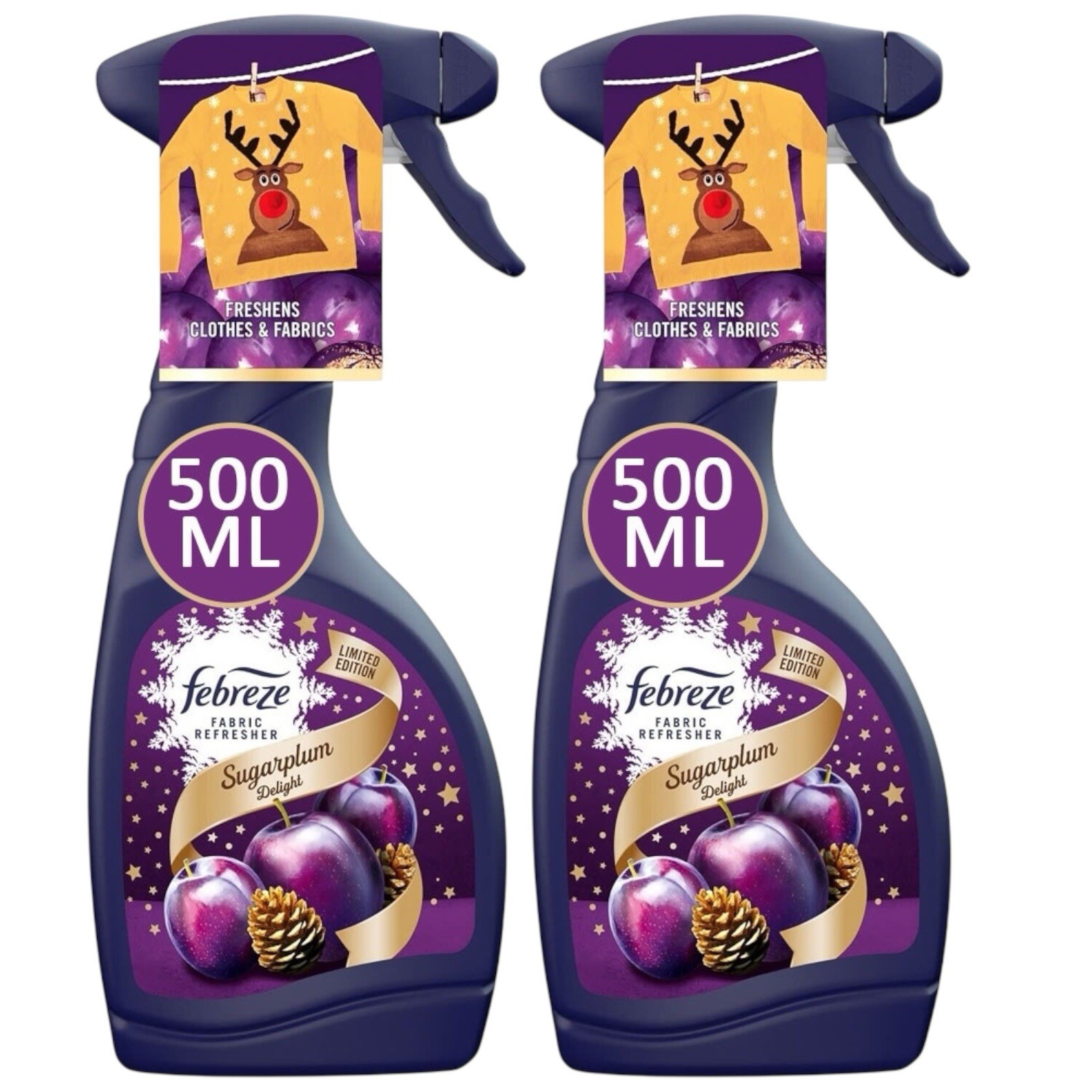 2X FEBREZE FABRIC REFRESHENER SPRAY SUGARPLUM DELIGHT 500ML ODOUR ELIMINATOR