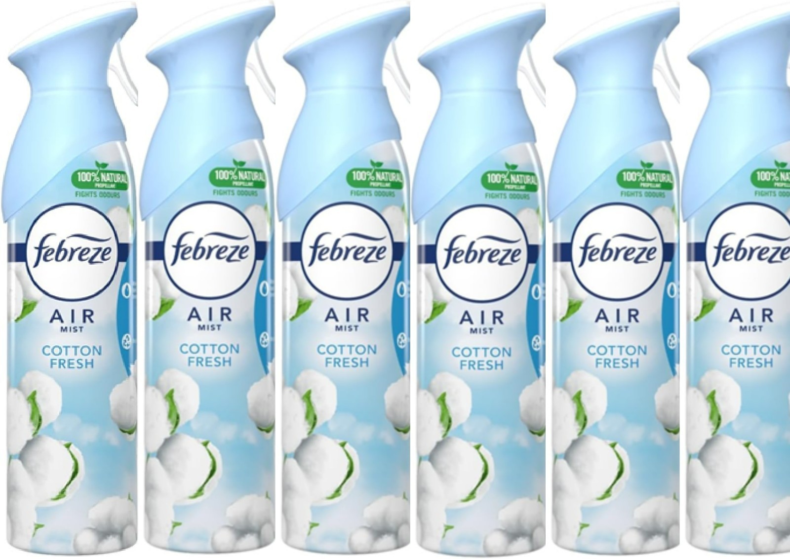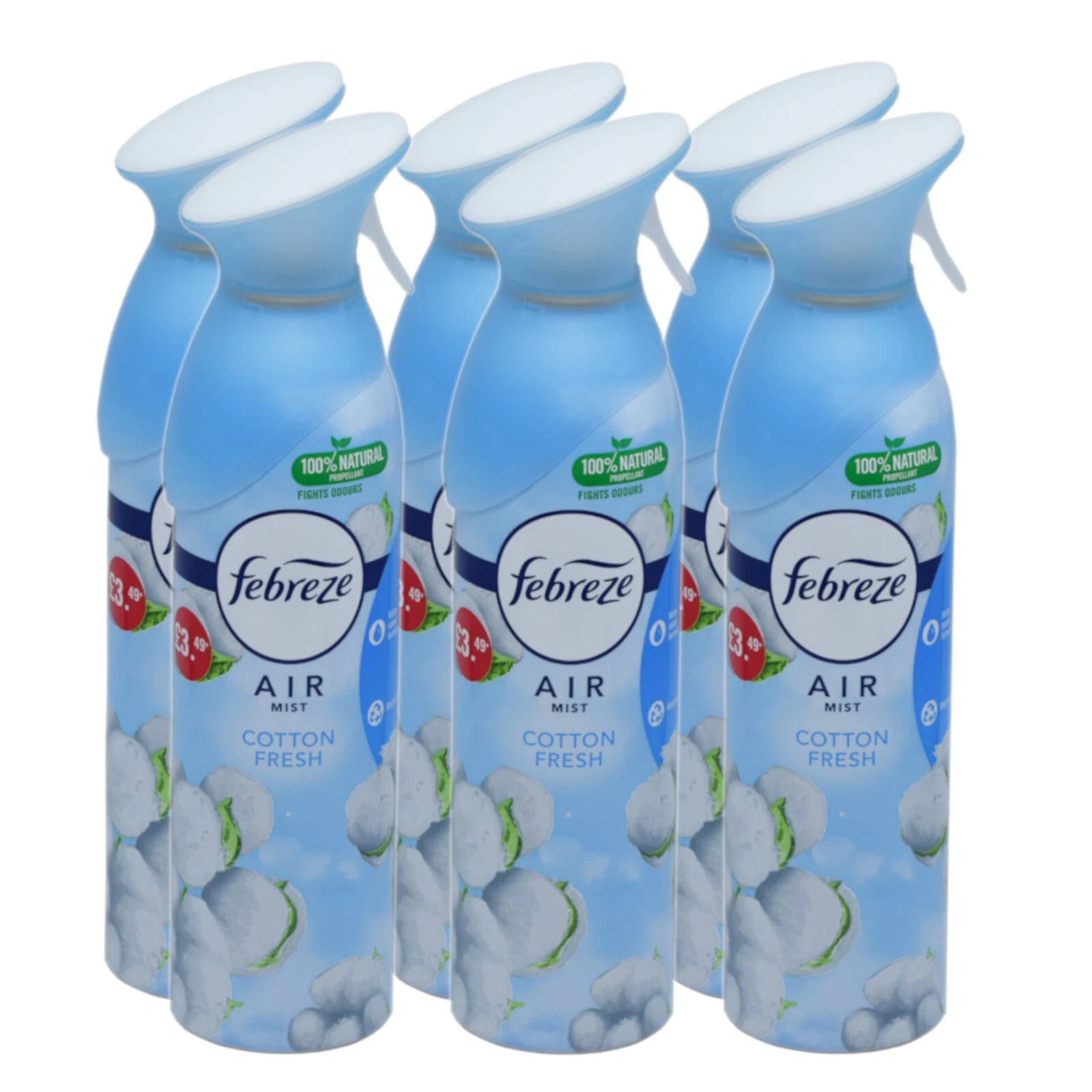 6x Febreze Air Freshener Spray - Air Mist Cotton Fresh, 6 x 300ml, Odour Fighter