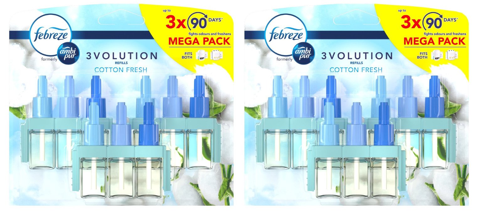 2 x Packs Febreze Ambi Pur 3volution Cotton Fresh Air Freshener Refills.