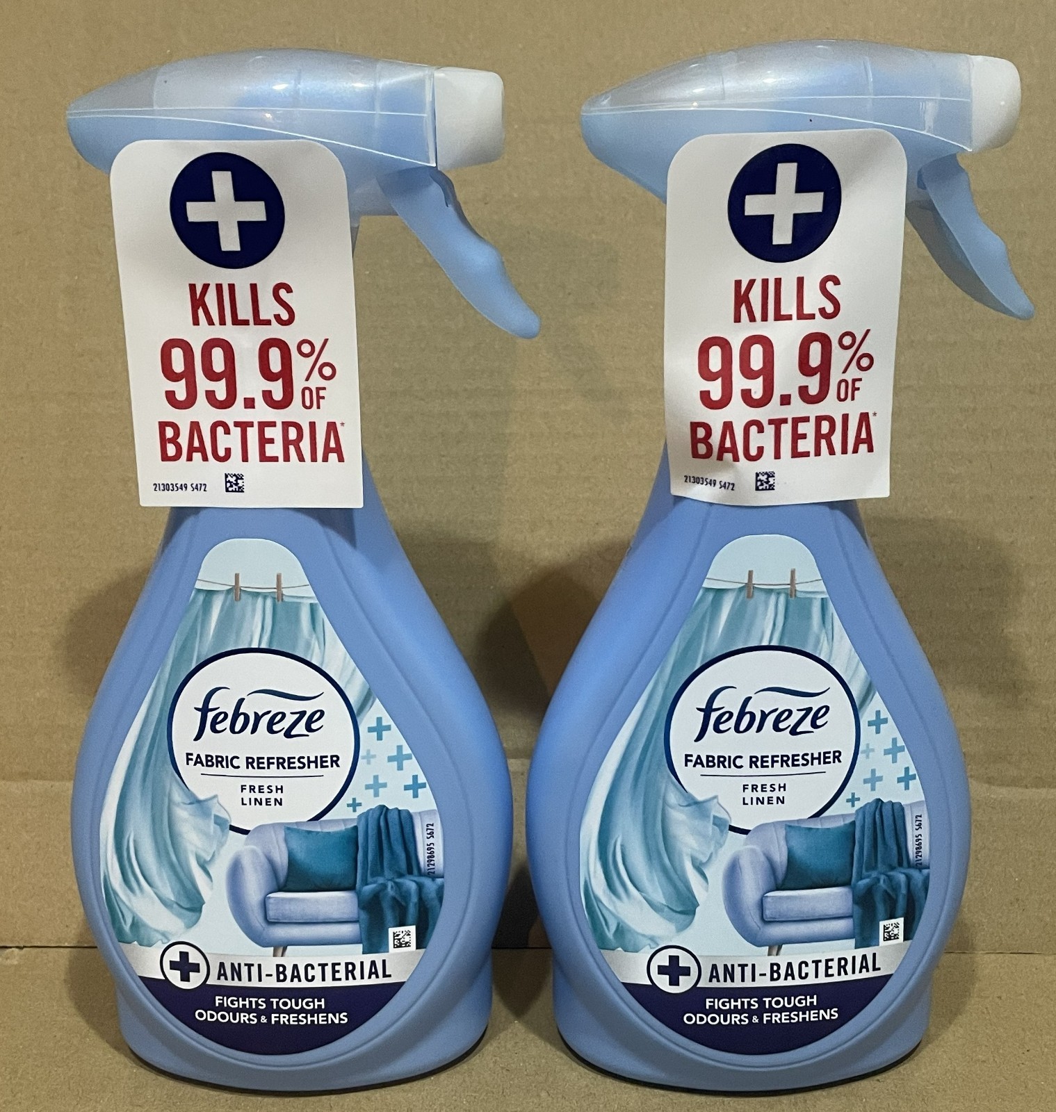 Febreze Antibacterial Fabric Refresher Spray, FRESH LINEN, 2 x 500ml
