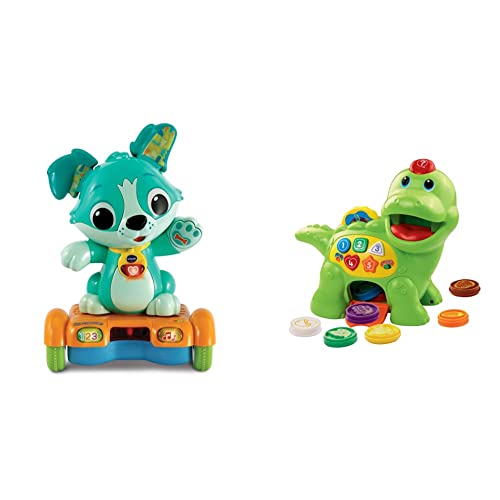 VTech Play & Chase Puppy, Interactive Baby Toy with 2 Modes of Play & Baby Feed Me Dino | Musical Baby Toy with Numbers, Counting Music & Shapes | Interactive Light Up Toy