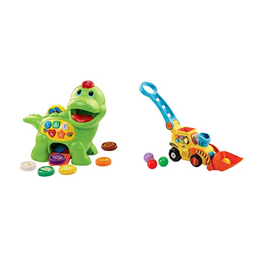 VTech Baby Feed Me Dino | Musical Baby Toy with Numbers, Counting Music & Shapes | Interactive Light Up Toy Suitable from 1, 2, 3 Year Olds Kids & POP and Drop Digger| Educational Push Along Digger