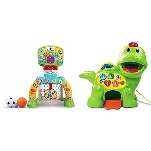 VTech 3-in-1 Sports Centre, Baby Interactive Toy , Suitable for Babies from 12 to 36 Months (Yellow/Blue) & Baby Feed Me Dino | Musical Baby Toy Suitable From 1, 2, 3 Year Olds Boys & Girls