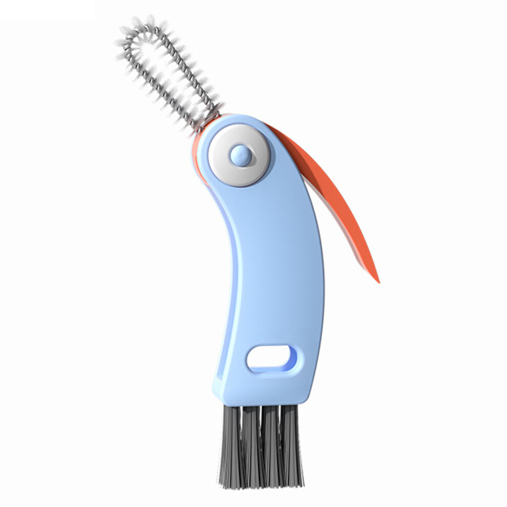 (Blue) 3-in-1 Multifunctional Cup Lid Brush Crevice Cleaning Brush Feeding Bottle Brush Cup Mouth Groove Washing Tool