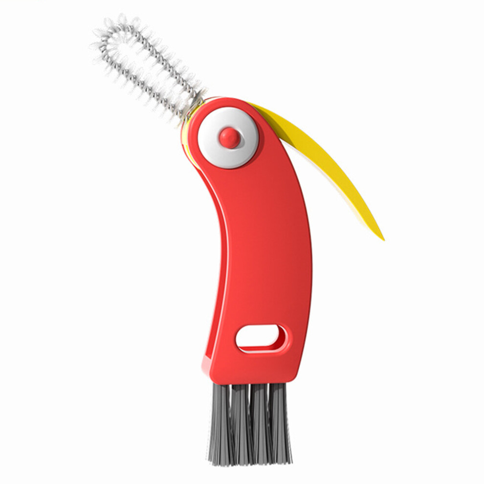 (Red) 3-in-1 Multifunctional Cup Lid Brush Crevice Cleaning Brush Feeding Bottle Brush Cup Mouth Groove Washing Tool