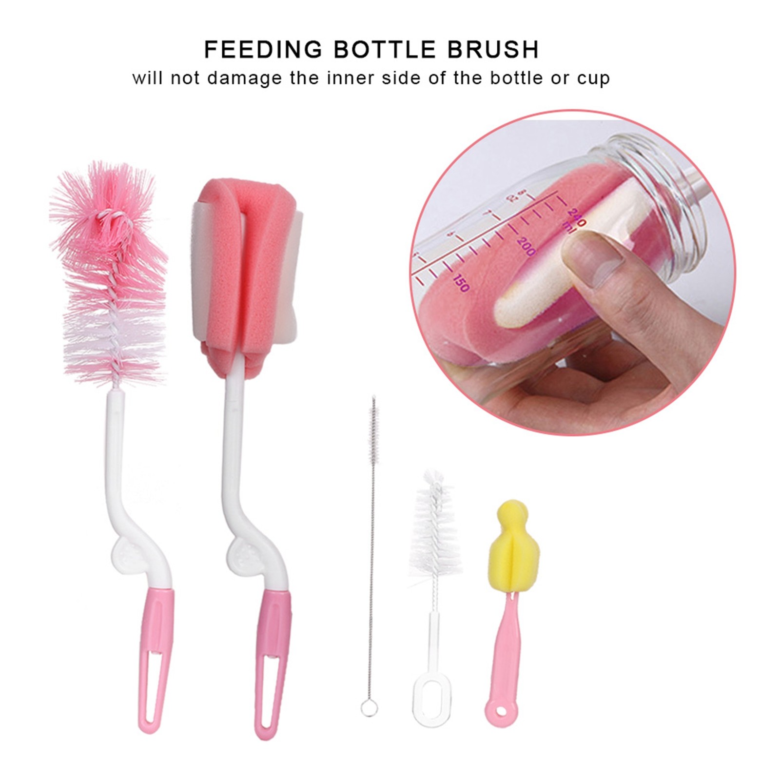 5pcs Baby Feeding Bottle Cleaning Set Bottle Brush Baby Feeding Bottle Cleaning
