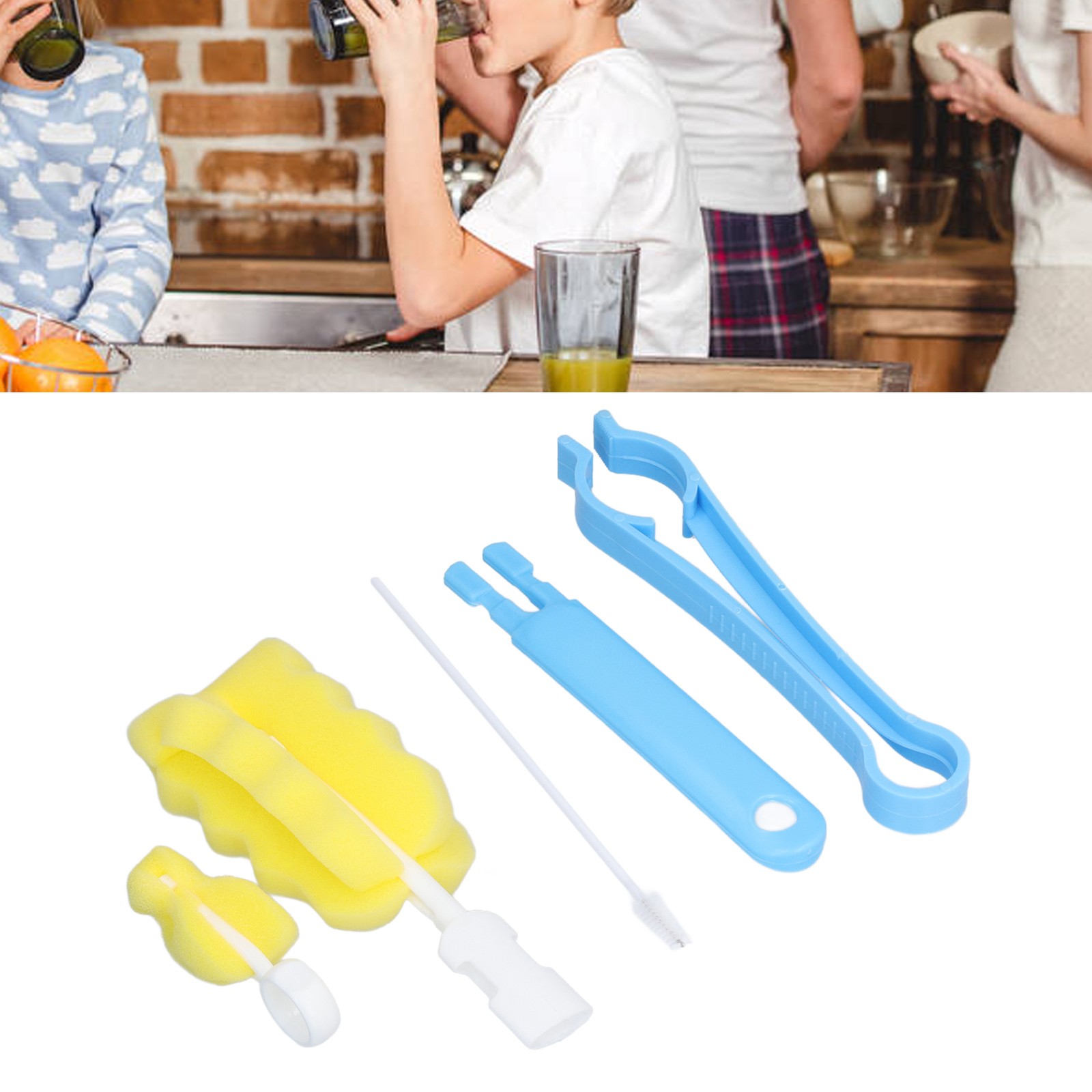 5x Baby Children Feeding Bottle Cleaning Brush Set Straw Feeding Bottle Sponge