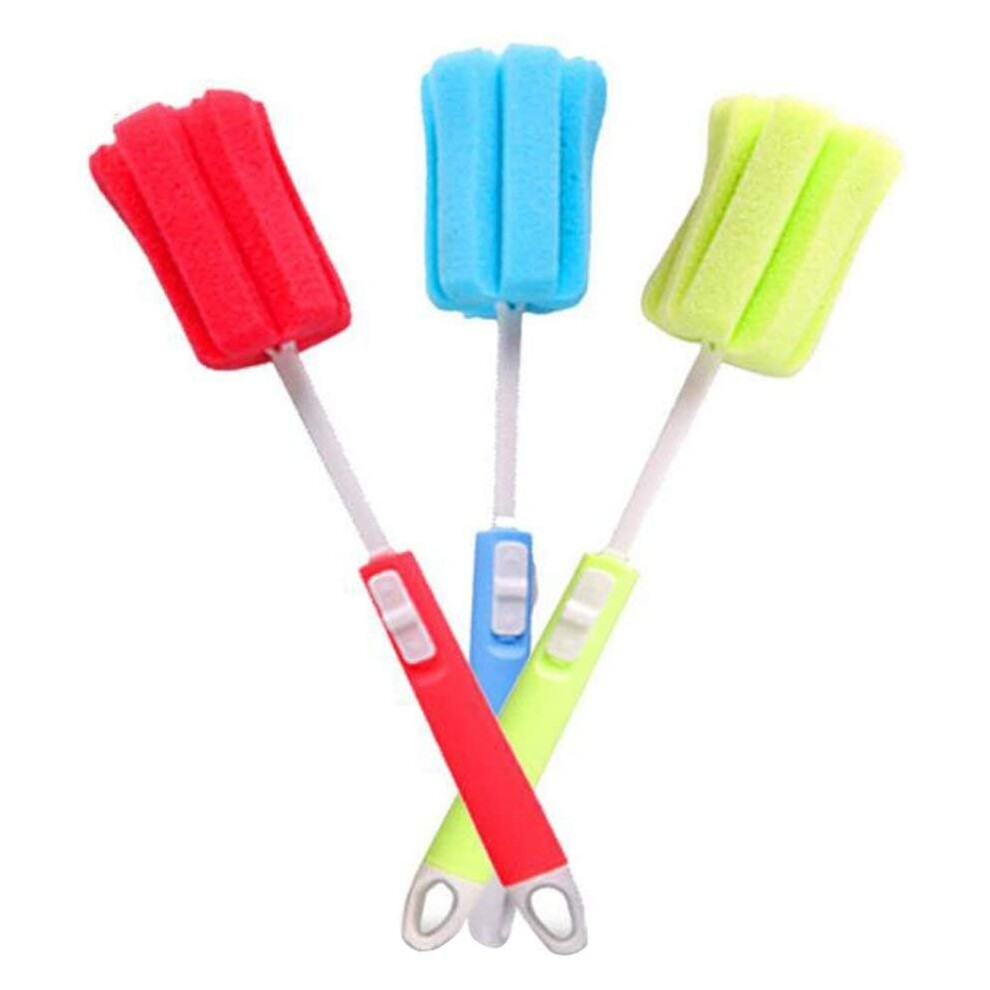 3PCS Sponge Cleaning Brush - Adjustable Plastic Long Handle Cup Feeding Bottle Scrubber Cleaning Brushes With Soft Foam Sponge for Coffee Glasses