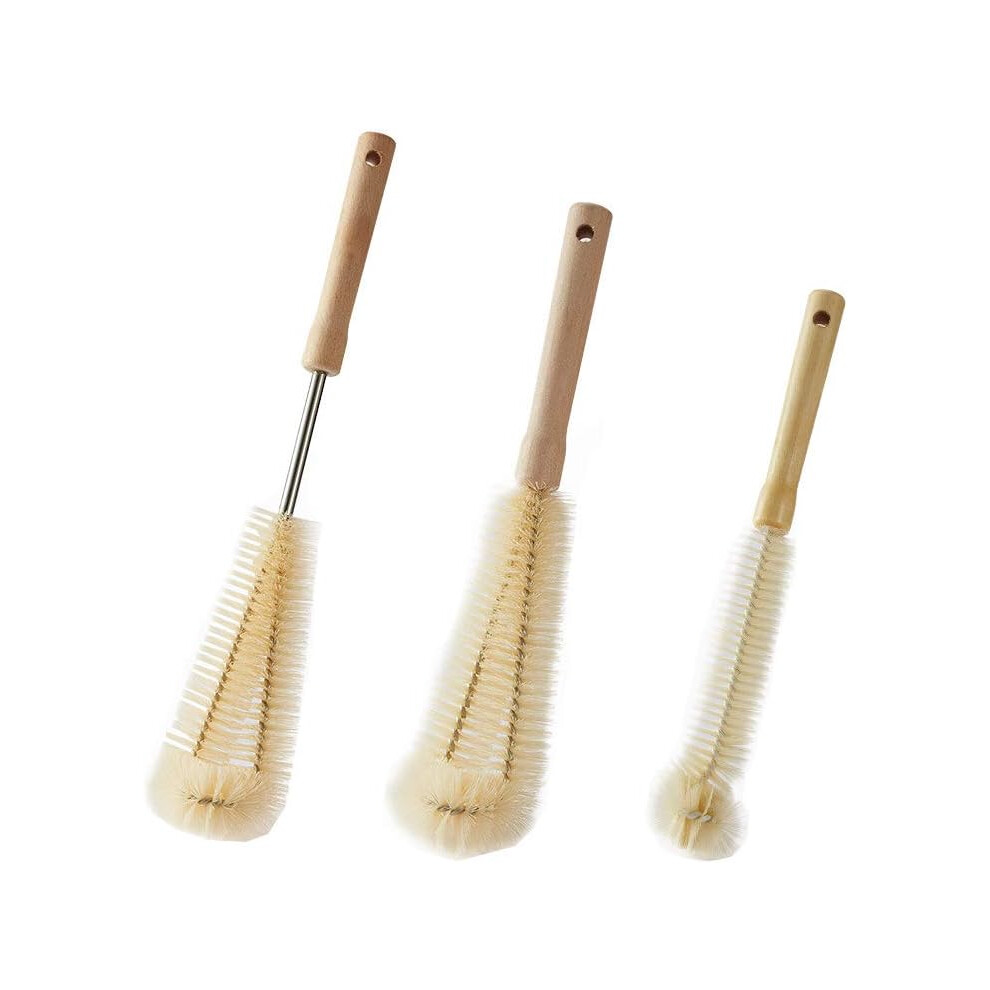 3 Pieces Bottle Cleaning Brushes, Glass Bottle Brush, Long Wooden Handle and L-Shaped Brush Head, for Glass Bottle Baby Feeding Bottle Kettle
