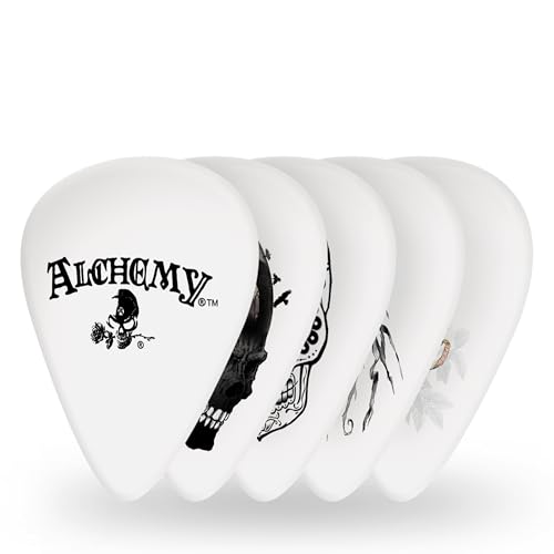 D'Addario Alchemy Celluloid Guitar Picks - Natural Feel, Warm Tone - Skull Collection, Medium 0.70mm, 10-pack