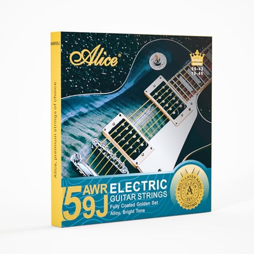 Alice Guitar Strings, Coated Electric Guitar Strings - Gold Polished for Smooth Feel and Warm, Bright Tone, Ball End with String Label - Easy to Install (Regular Light, 10-46)