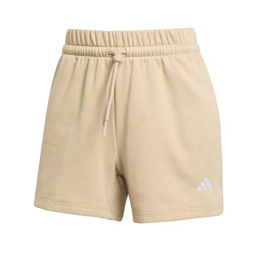 adidas Women's Essentials Small Logo Feel Cozy Shorts, Warm Sandstone/White, S