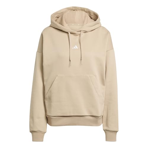 adidas Women's ESSENTIALS SMALL LOGO FEEL COZY HOODIE, warm sandstone/white, XL
