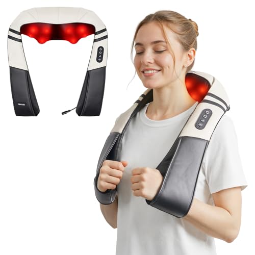 Nevvue Neck Massager, Back Massagers with Heat, Deep Tissue 3D Kneading, Neck and Shoulder Massage, with 3 Levels Intensities, Low Noise, for Leg, Feet, Arms, Gifts for Women