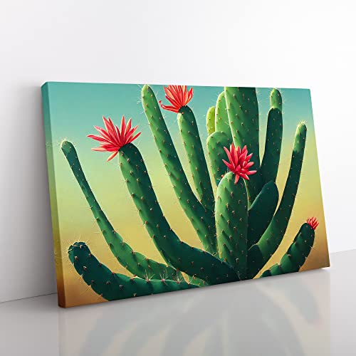 Feisty Cactus Canvas Wall Art Print Ready to Hang, Framed Picture for Living Room Bedroom Home Office Décor, 76x50 cm (30x20 Inch)