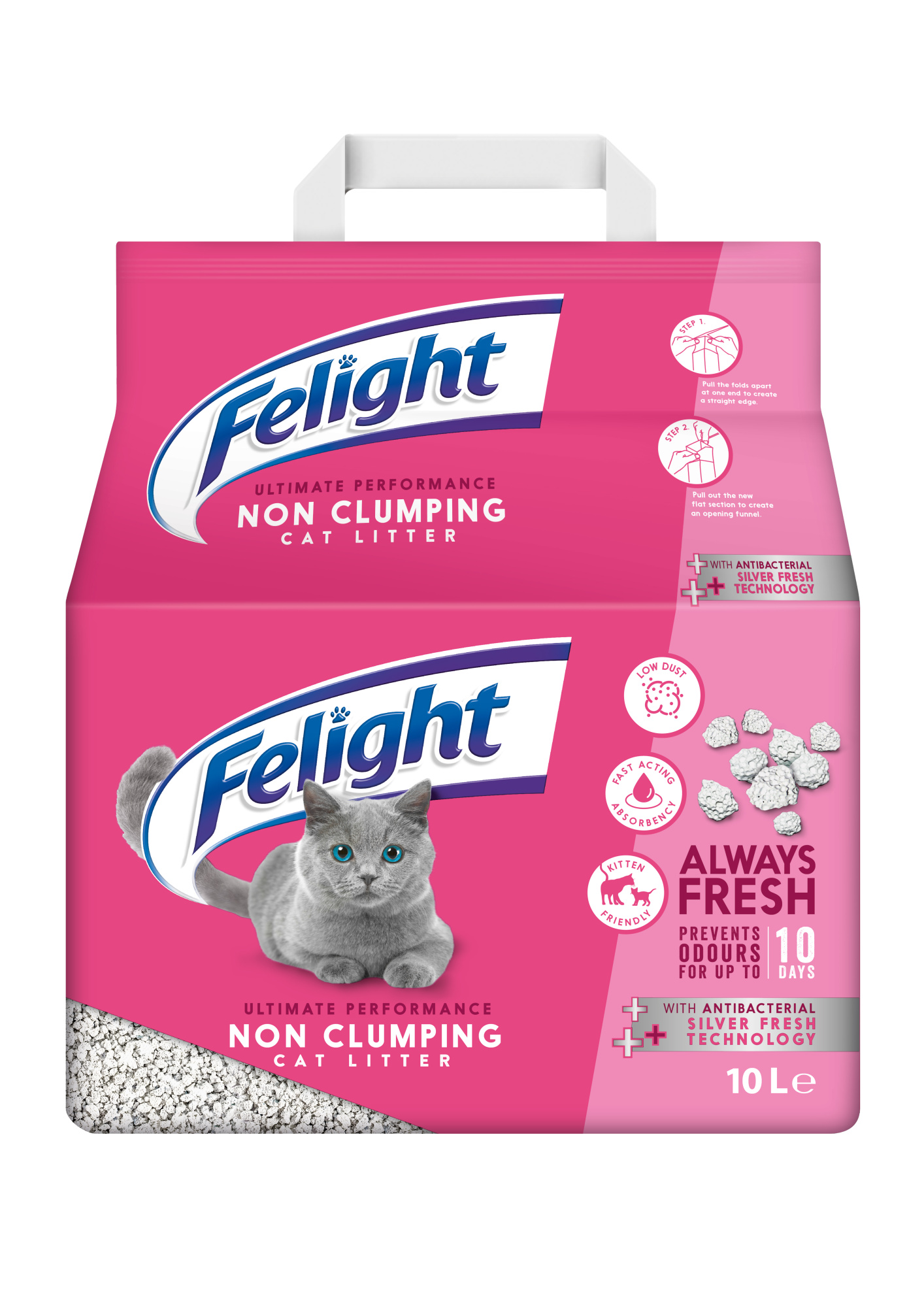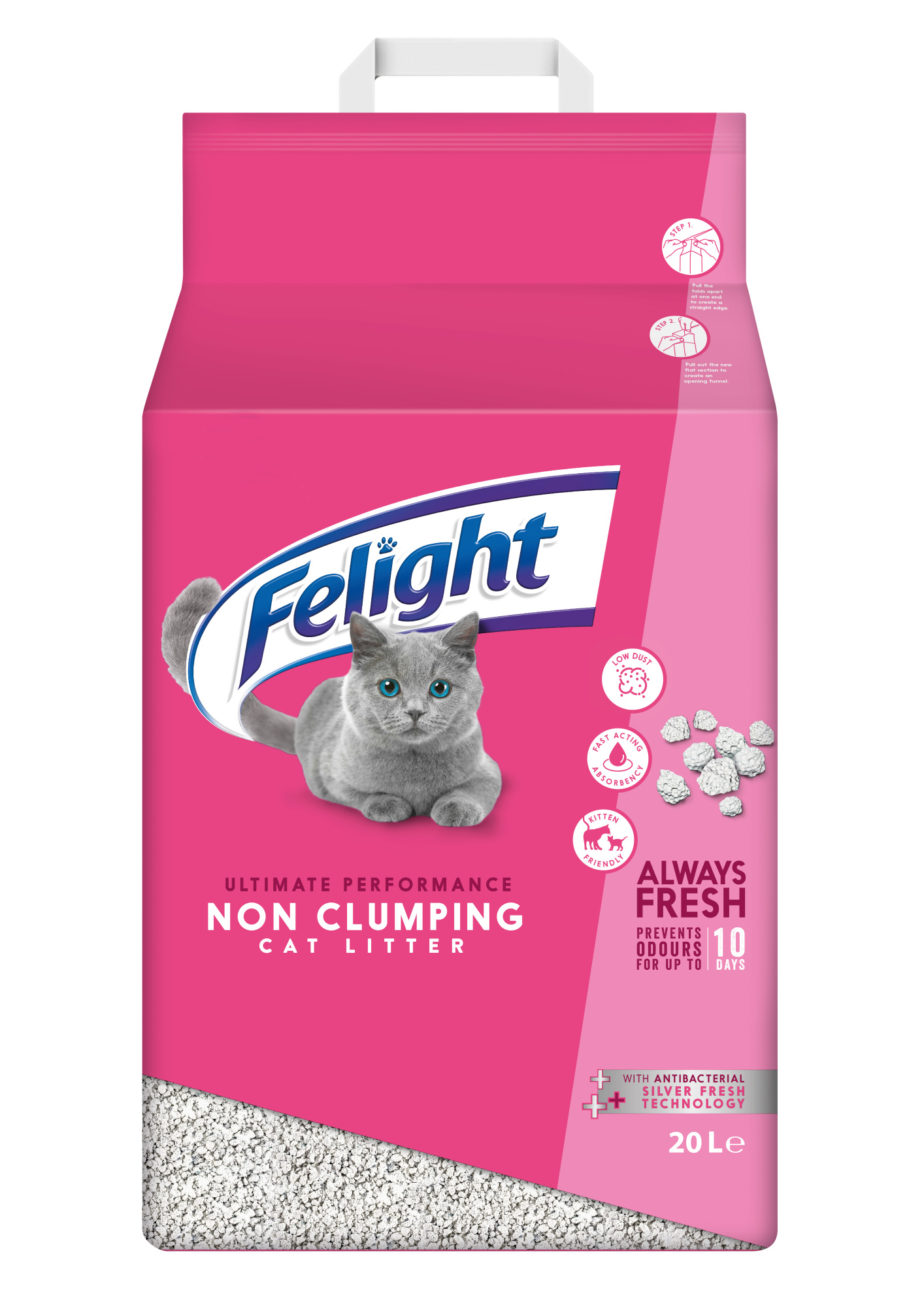 Felight Non-Clumping Cat Litter (20L Bag) - Antibacterial Silverfresh Technology, Prevents Odours for up to 10 Days, Made in the UK