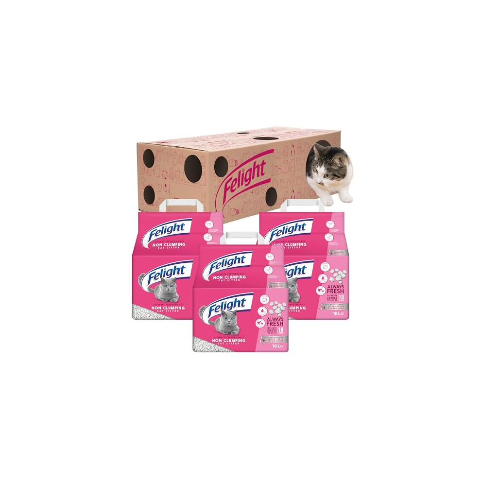Felight Non-Clumping Cat Litter (30L Bundle) + Cardboard Playbox - Antibacterial Silverfresh Technology, Prevents Odours for up to 10 Days, Made in
