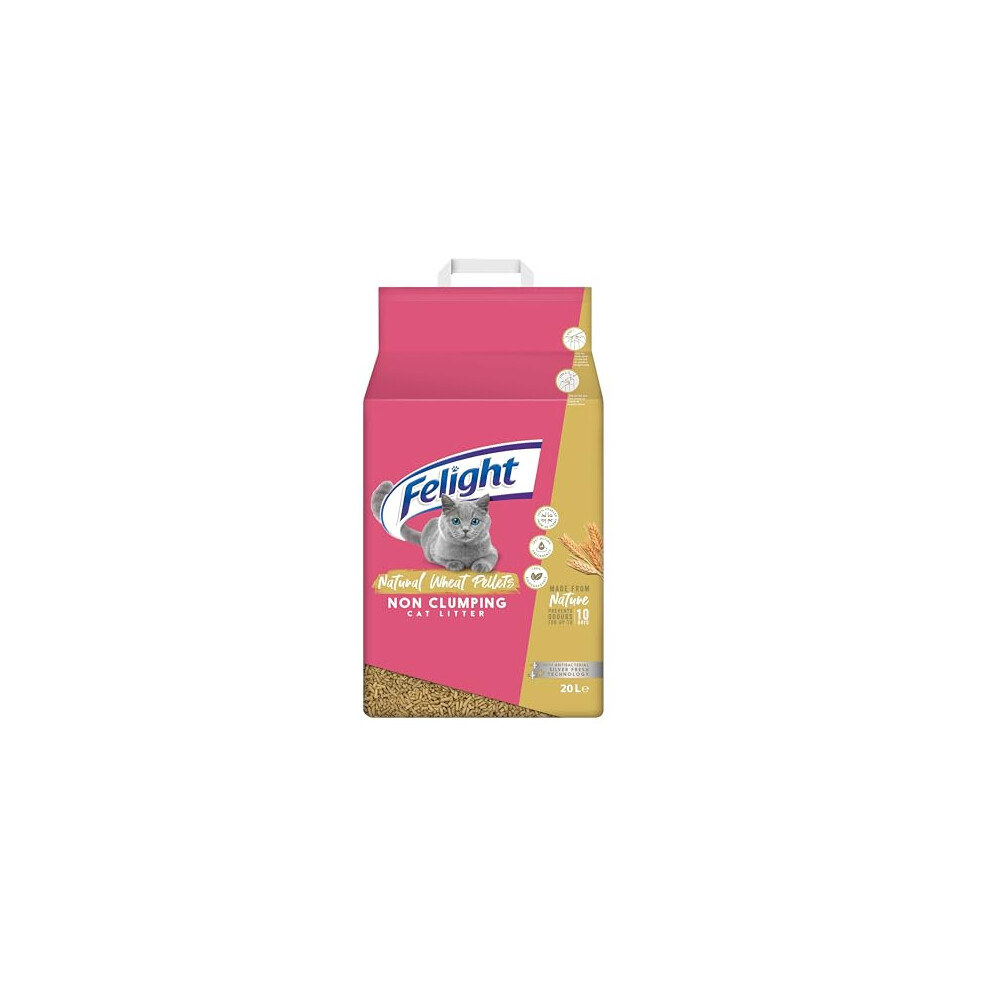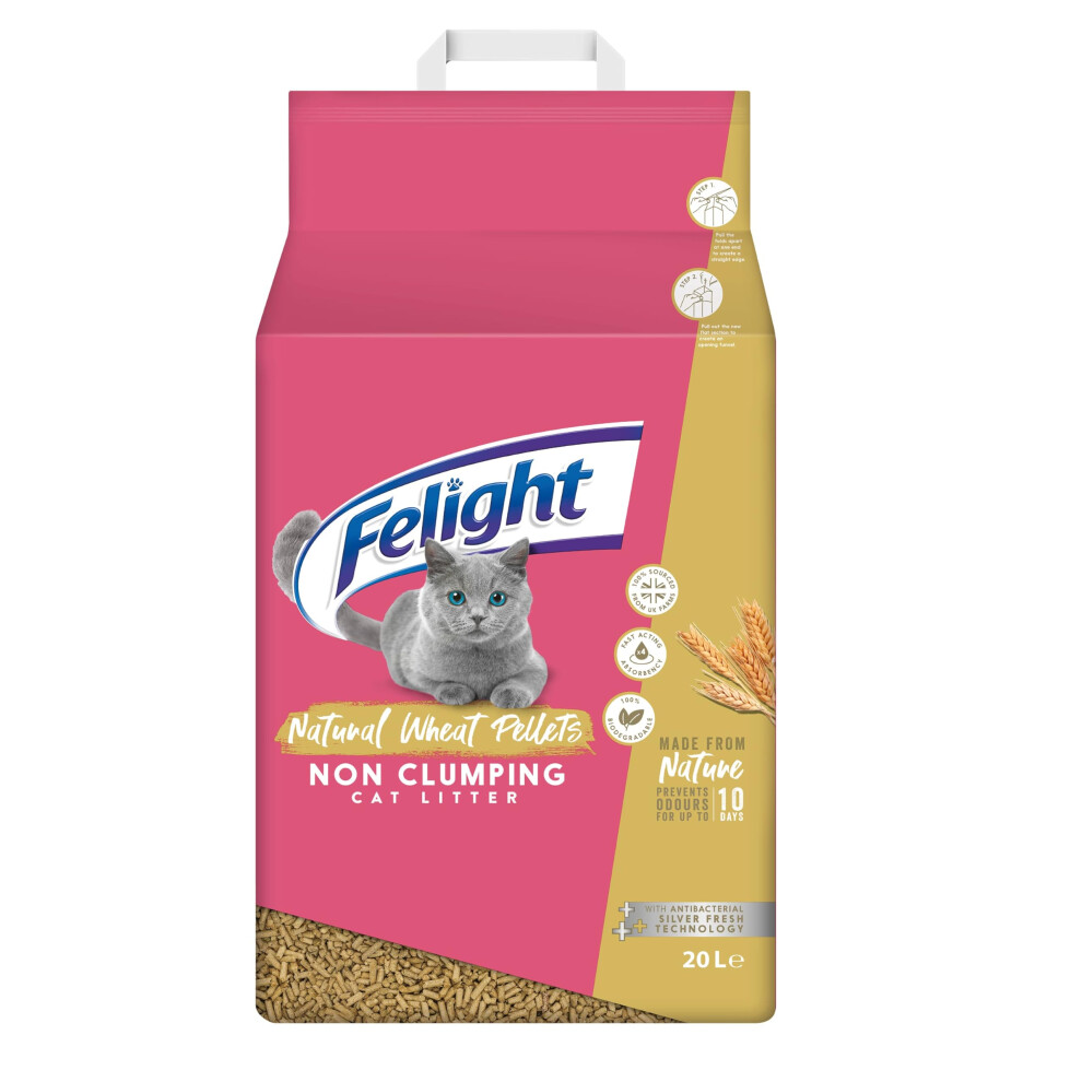 Felight Natural Wheat Pellets Cat Litter (20L Bag) - Non-Clumping, 100% Biodegradable, Antibacterial Silverfresh Technology, Prevents Odours for up to