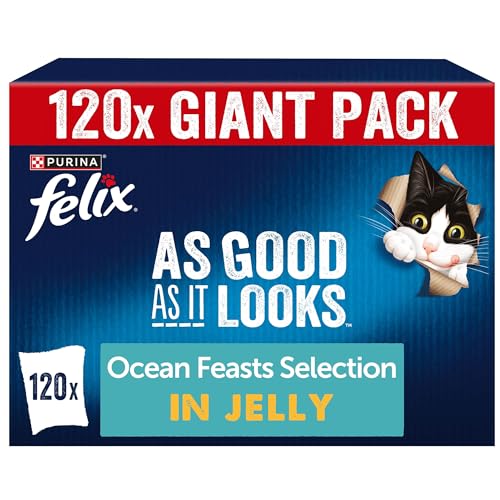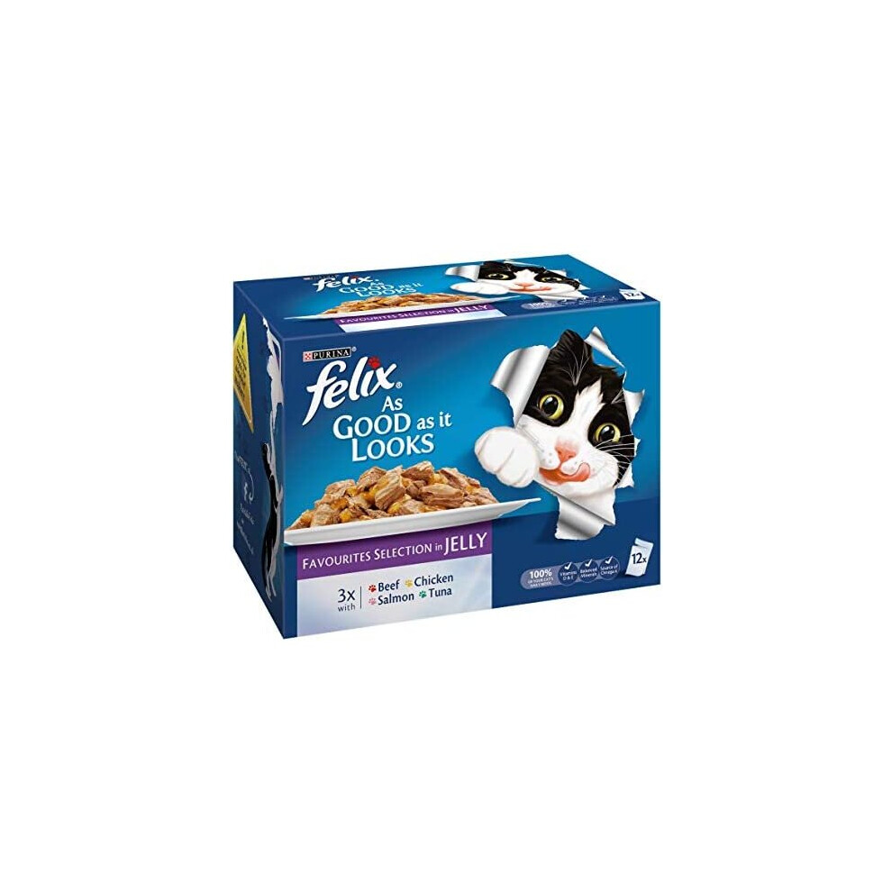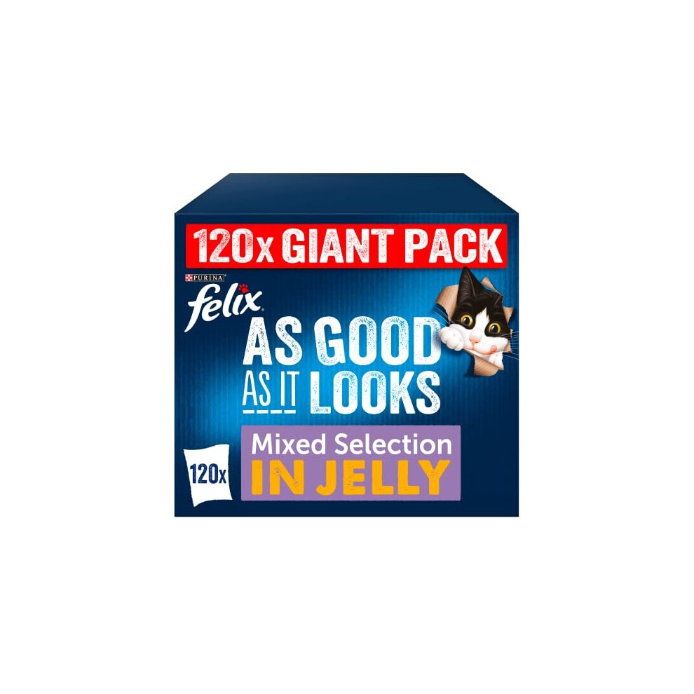 Felix Cat Food As Good As It Looks in Jelly with Beef, Chicken, Cod and Tuna (120 x 100 g Bag)