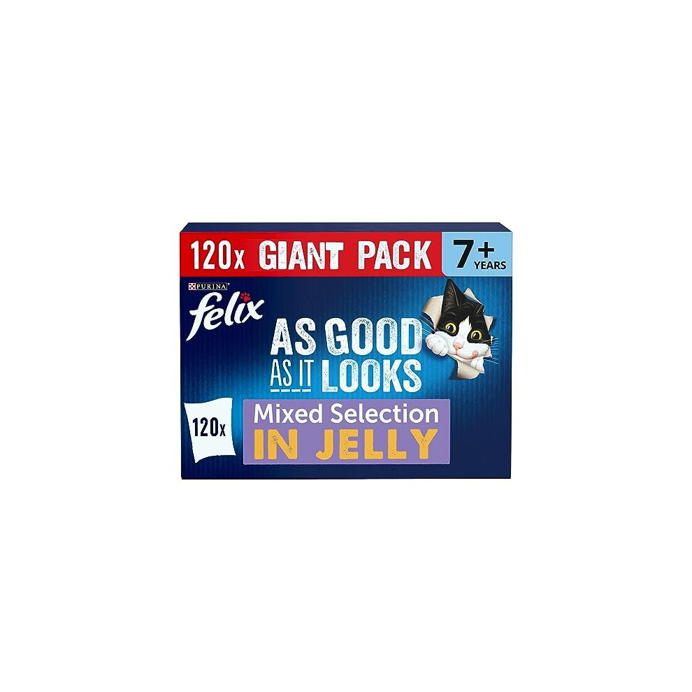 Felix As Good As It Looks 7+ Senior Wet Cat Food Mixed Variety in Jelly Beef, Chicken, Tuna, Salmon 120 x 100g Pouches