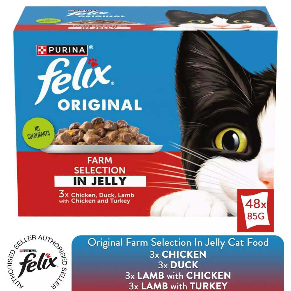 48x85g Felix Wet Cat Food Original No Colourants Farm Selection in Jelly, 3-6Y