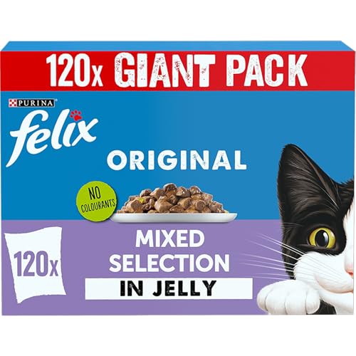 Felix Cat Food As Good As It Looks in Jelly with Beef, Chicken, Cod and Tuna (120 x 100 g Bag)