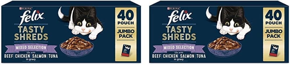 FELIX Tasty Shreds Mixed Selection in Gravy Wet Cat Food 40x80g (Pack of 2)