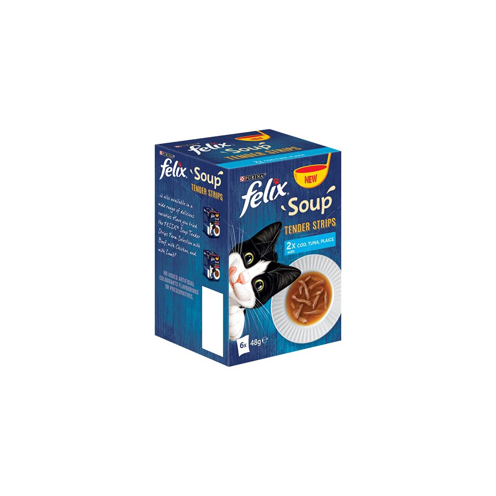 Felix Soup Cat Food Fish Selection Tender Strips 6Ã48g, Pack of 8