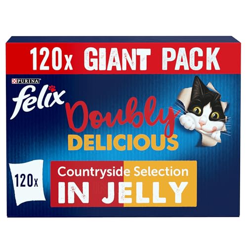 FELIX Doubly Delicious Adult Wet Cat Food Countryside Selection in Jelly Beef, Poultry, Chicken, Kidney, Lamb, Turkey, Liver 120 x 85g Pouches