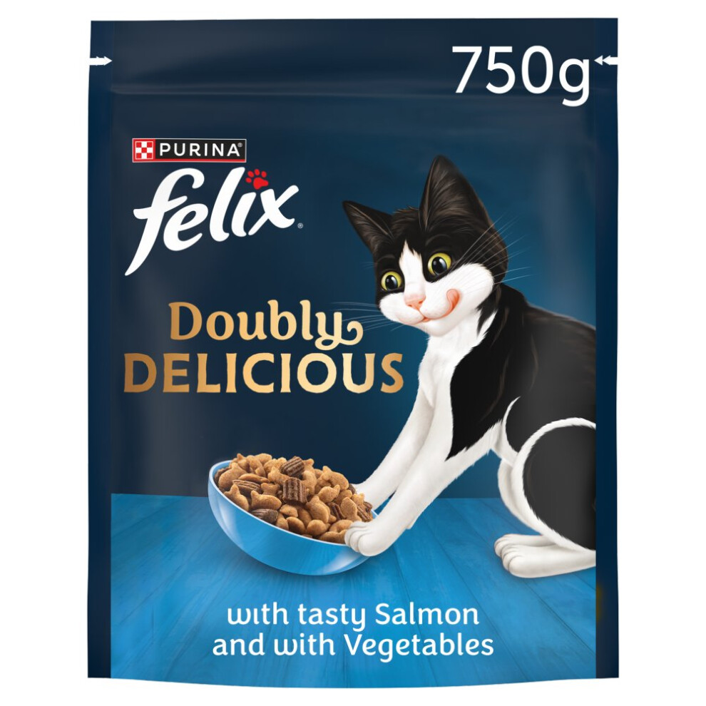 Felix Doubly Delicious Salmon & Vegetables Dry Cat Food 750g (Pack of 4)