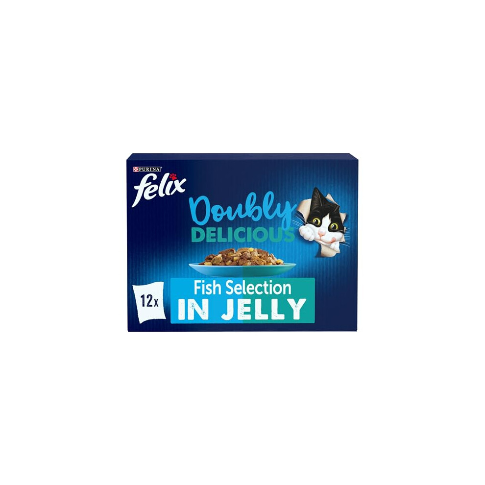 FELIX Doubly Delicious Fish Selection in Jelly Wet Cat Food 12x85g (Pack of 4)