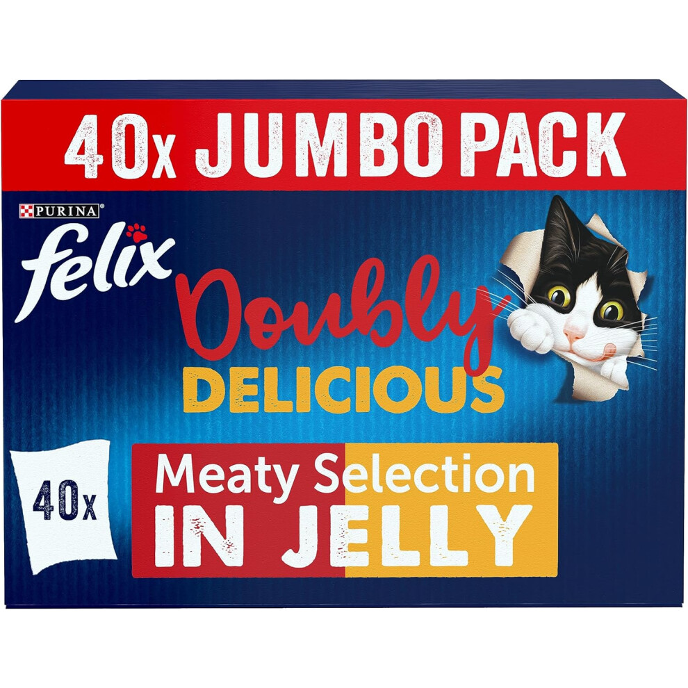 Felix Doubly Delicious Meaty Cat Food 40x100g - Gently cooked meat & fish, nutritionally complete, omega-6, balanced minerals, 12 servings
