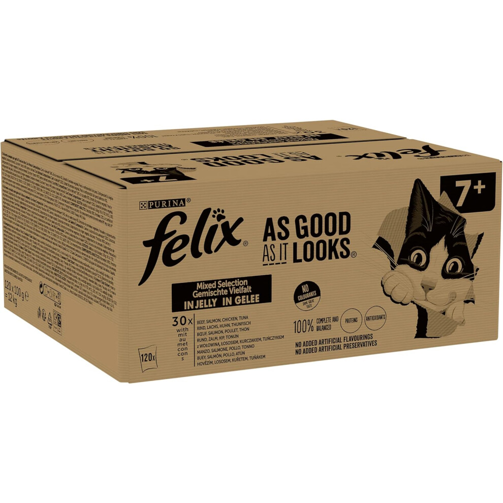 Felix As Good As It Looks Doubly Delicious Senior Cat Food Meat, 12 x 100g