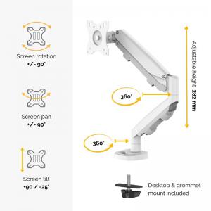 Fellowes 9683201 Eppa Single Monitor Arm - White 32371J