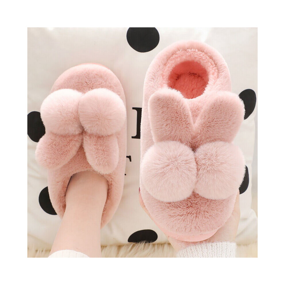 Women's Shoes Rabbit Ear Floor Indoor Cotton Slippers Men Warm Winter Shoes Women Non-Slip Thick Bottom House Female Slippers