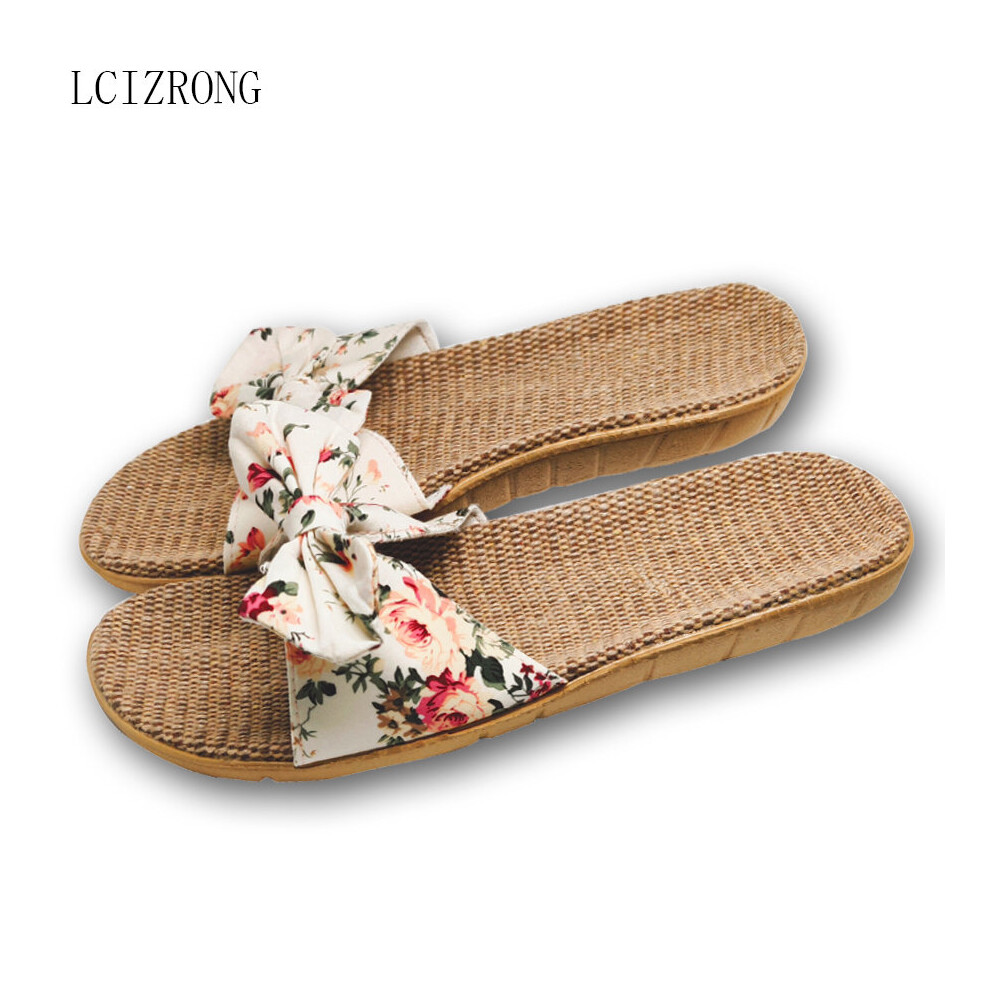 Summer 6 Colors Flax Home Slippers Women Slapping Beach Flip Flops Non-slip House Female Family Slippers