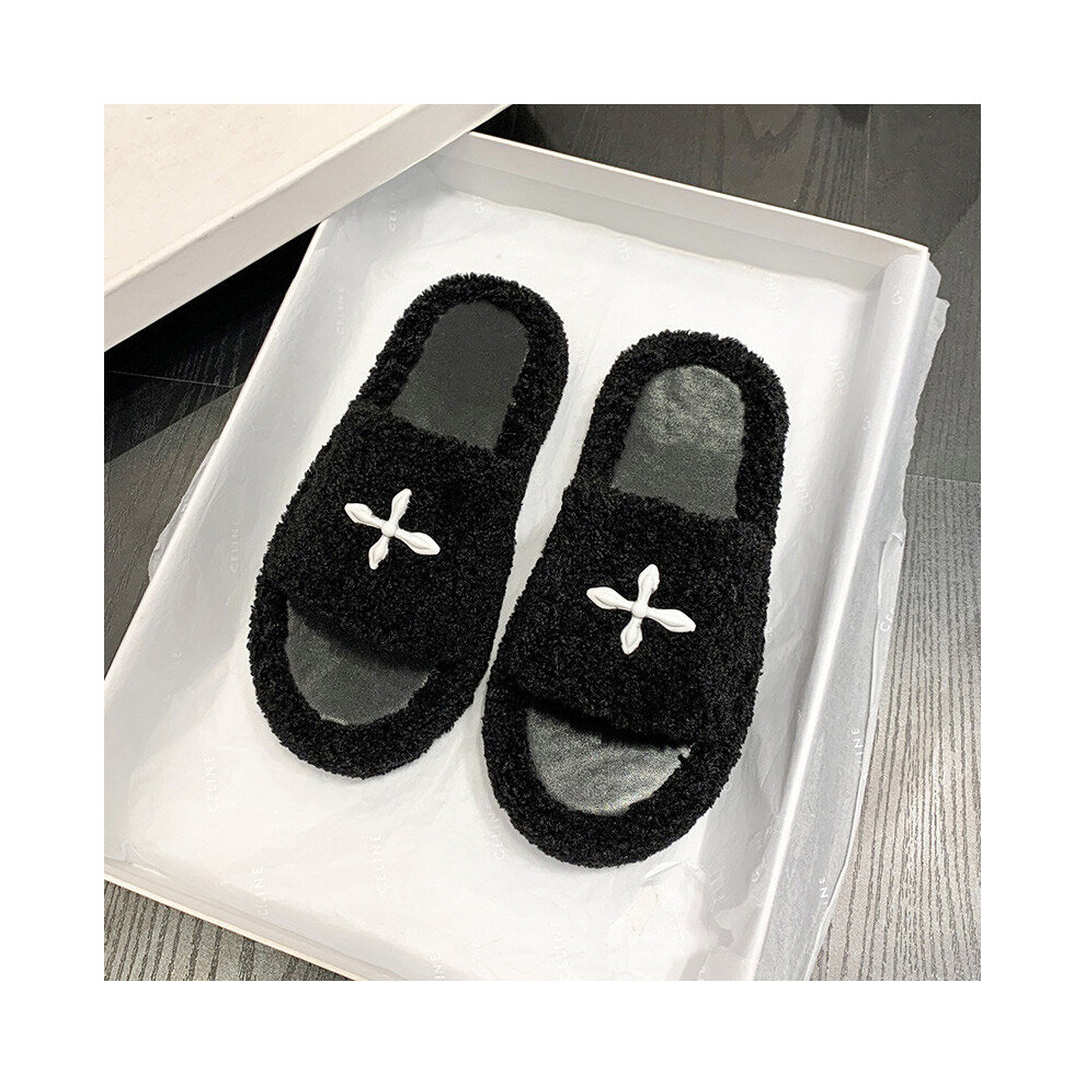 Women?s Autumn Winter Slippers Warm Furry Flat Platform Open Toe House Female Slippers Comfortable Light Shoes
