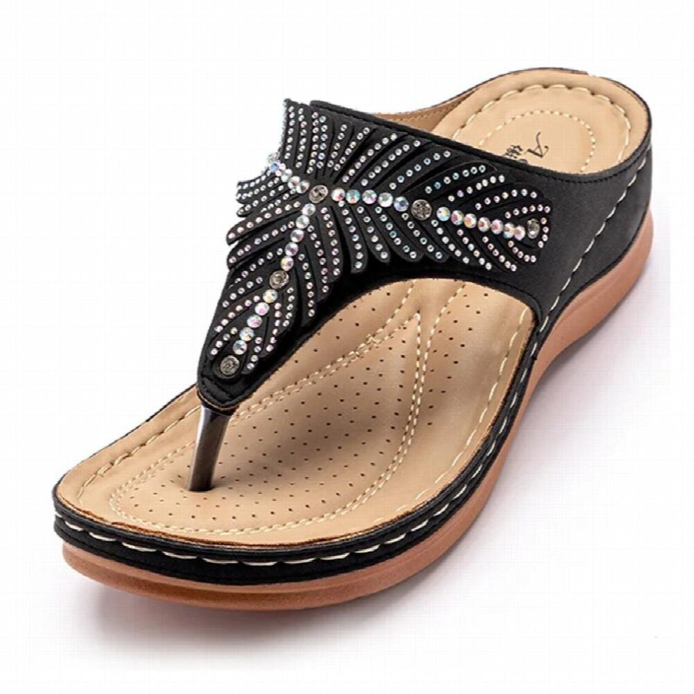 Women's Comfortable Ankle Strap Flat Sandals Spring And Summer Slippers Female Rattan Grass Woven Household Indoor Couples Soft Sole Silent Floor House Slippers for Women Toe Womens (Black,6.5)