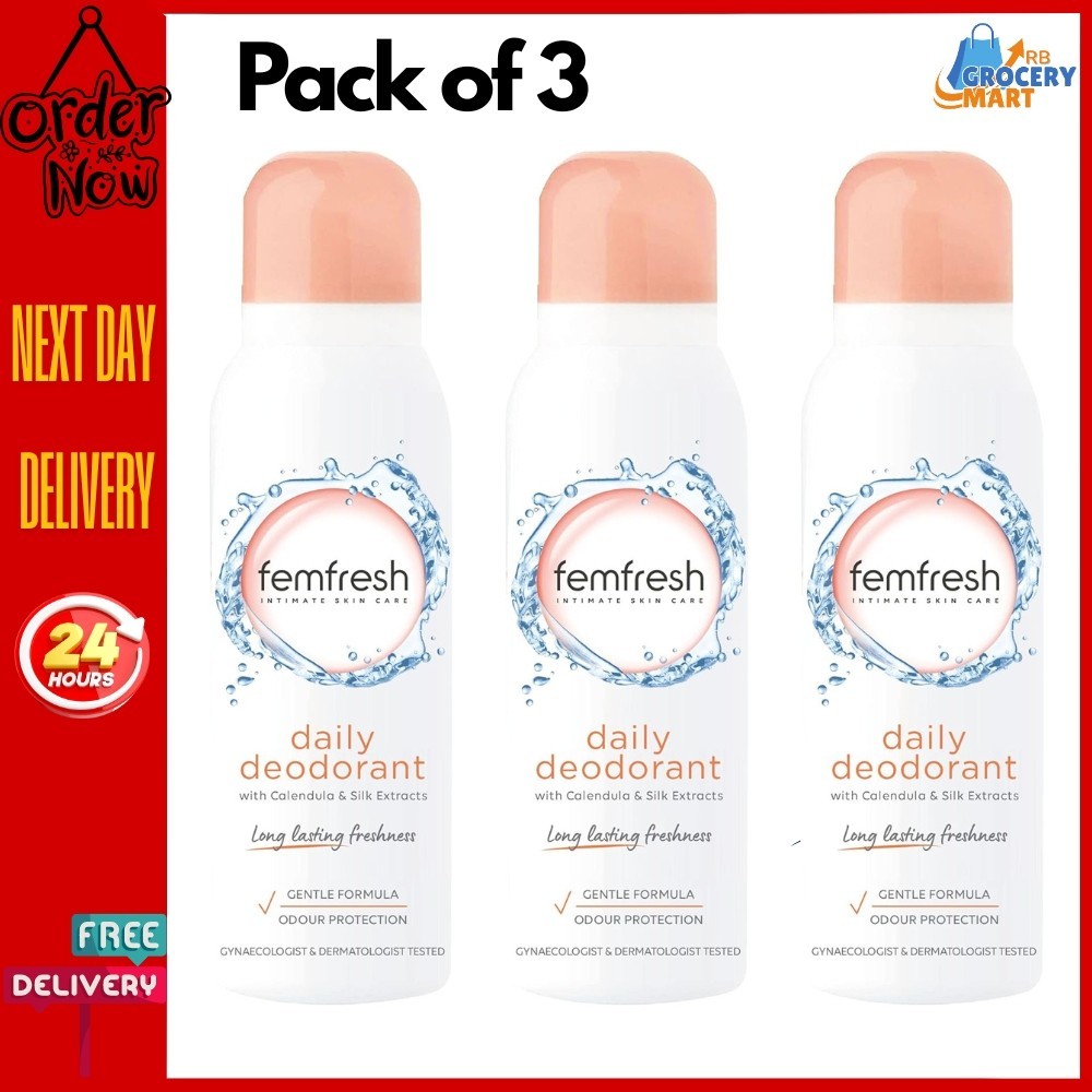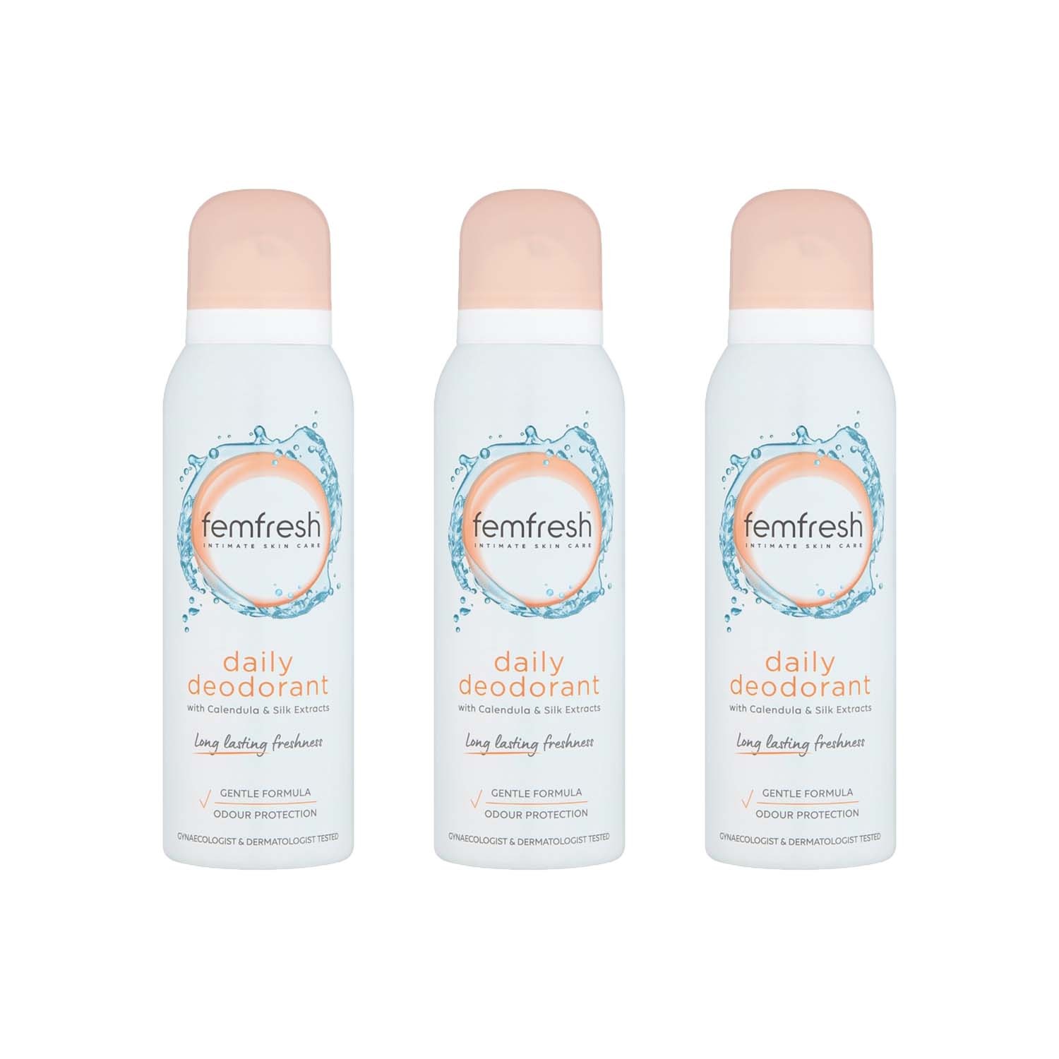 3 x Femfresh Daily Freshness Intimate Deodorant Gentle Vaginal Odour Spray 125ml