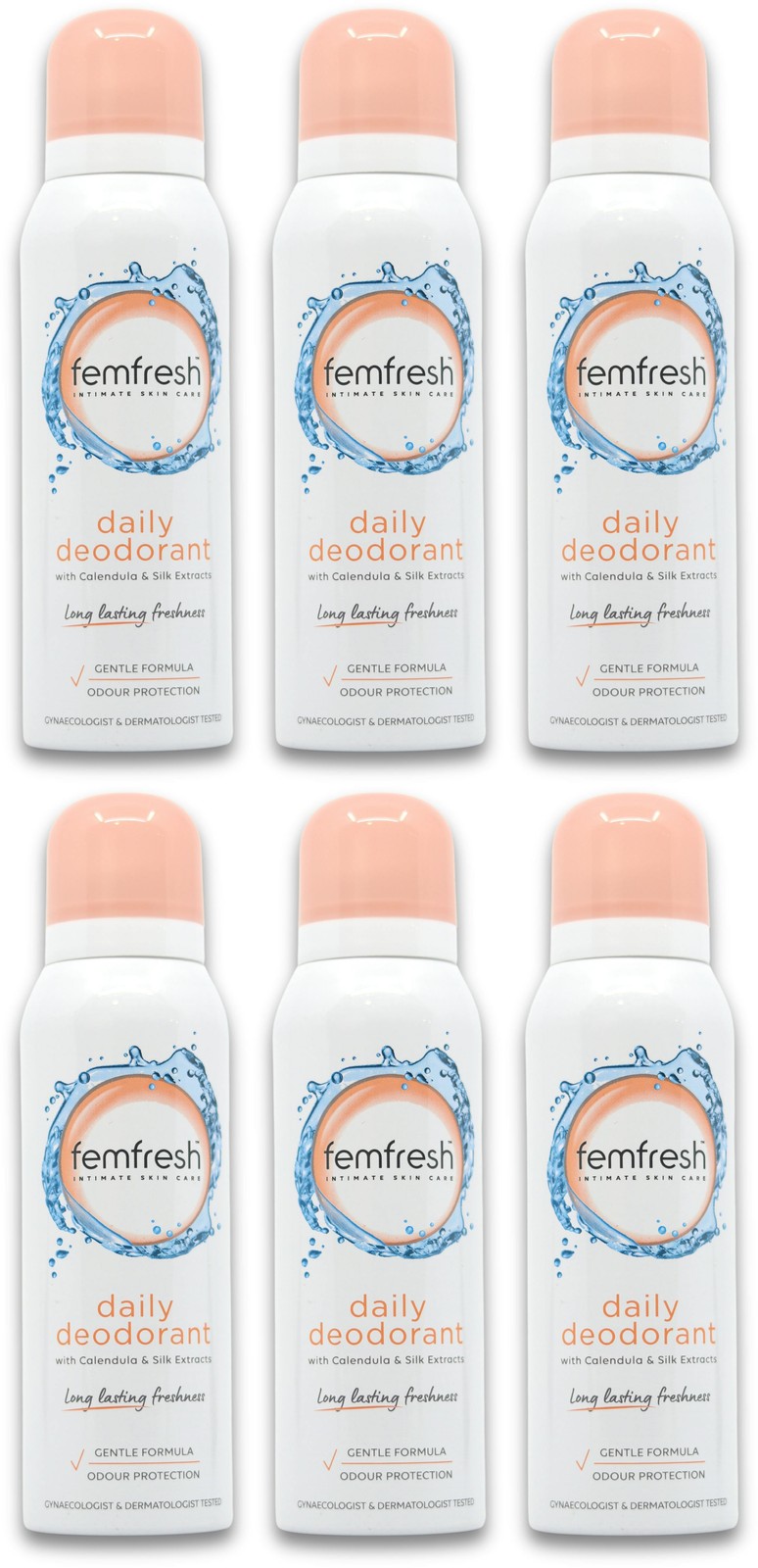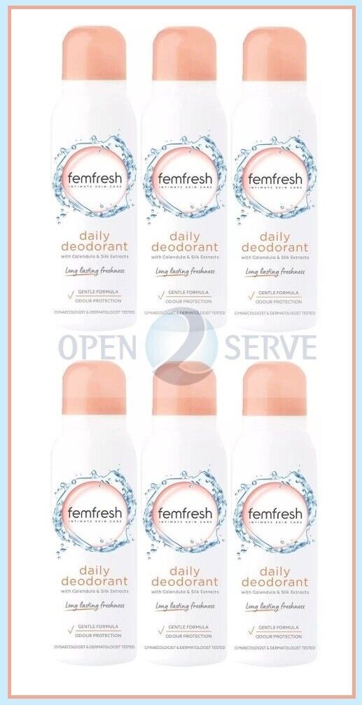 6x Femfresh Feminine Intimate Skin Care Freshness Deodorant Spray 125ml
