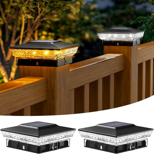 Luobannm Elegant Solar Post Cap Lights for Deck and Fence Posts, Waterproof Outdoor Lighting