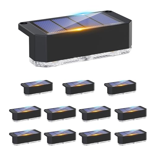 Peasur 12 Pack Solar Fence Lights Outdoor Garden, Solar Powered Step Light, Waterproof LED Deck Lights for Stairs Railing Yard Outside (Warm White)
