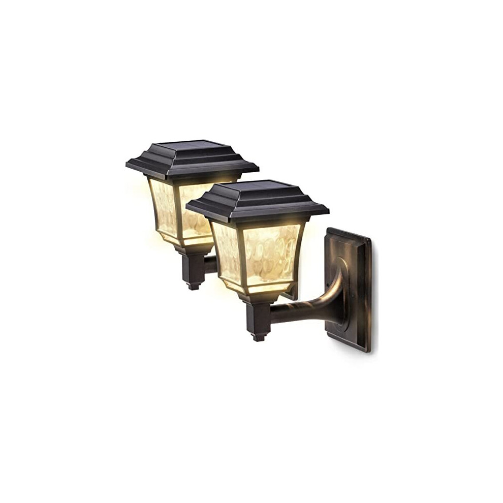 Hipzeepo 2 Pack Solar Fence Lights Metal Solar Powered Outdoor Wall Deck Step Lights for Garden Post Patio Backyard Yard Decor C