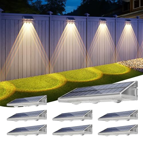 Delaiglow Solar Fence Lights 8 Pack - Solar Wall Lights Warm White Waterproof Outdoor Garden Lights for Fence, Wall & Patio, Decorative Ambient Lighting