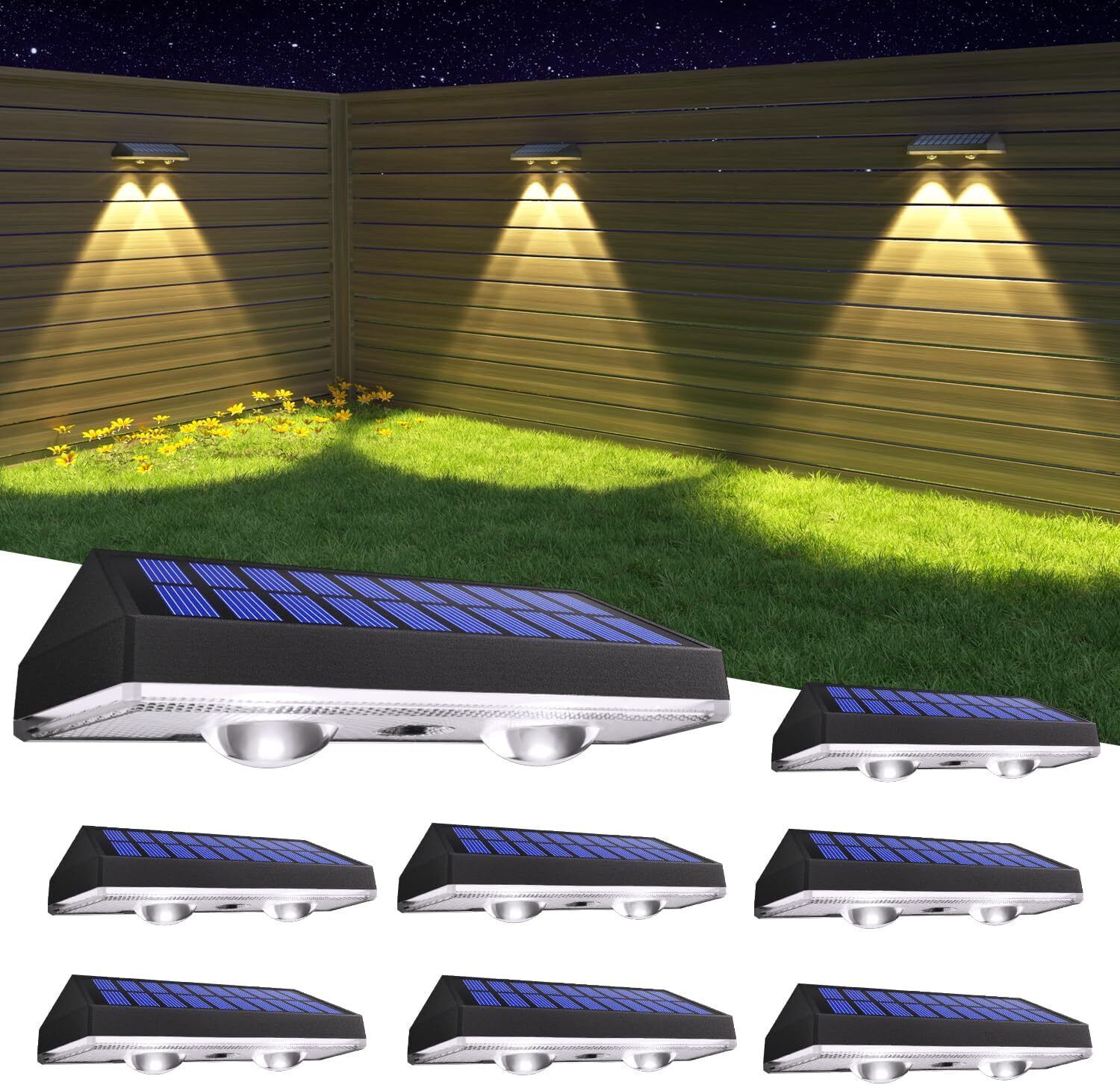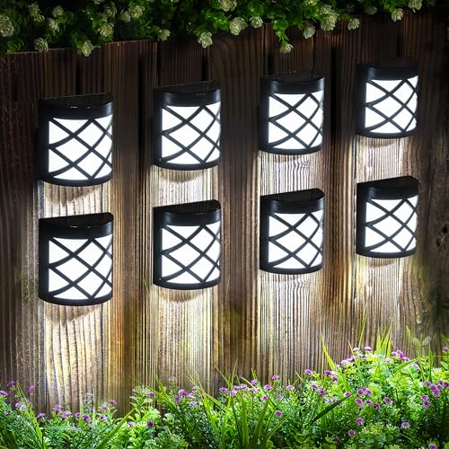 HAMLITE Solar Fence Lights Outdoor Garden: Solar Wall Lights Outdoor Waterproof - Solar Powered Garden Fence Lights 3 Color Modes for Deck Patio Decking Gate Yard Decoration 8-Pack